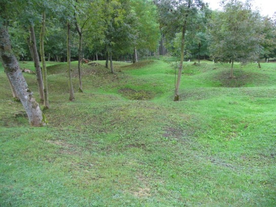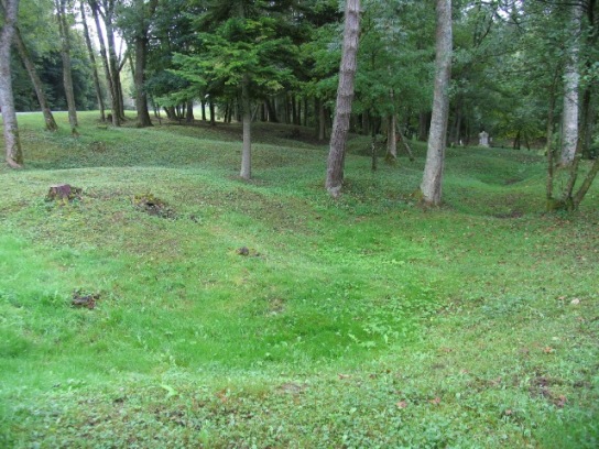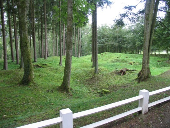 Hier befand sich das ca. 400 Einwohner starke Dorf Fleury, das von der deutschen und französischen Artillerie abwechseln im wörtlichen Sinn pulverisiert wurde, genau so wie weitere 7 Dörfer. Die Hügel sind nicht gewachsener Boden, sondern von den Geschoßen umgepflügt und neu gestaltet. Kein Grashalm, keine Baum oder Busch überlebte das mörderische Trommelfeuer. Die Landser duckten sich in den Granattrichtern und hofften dass nicht ein anderes Geschütz das gleiche mit Wasser vollgelaufene Loch trifft. Die Erdbatzen und Leichenteilen wurden von einem Punkt zum Anderen hin und her geworfen, bis alles nur noch bodenloser stinkender Morast war.