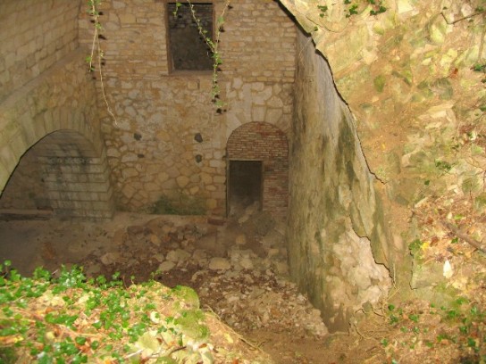 Hier befinden sich in allen Wällen gemauerte Kasematten die verschüttet
