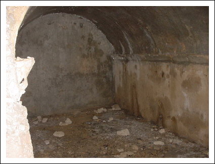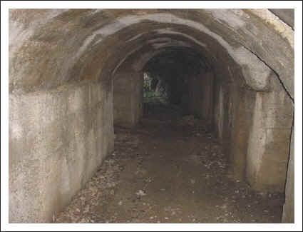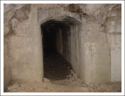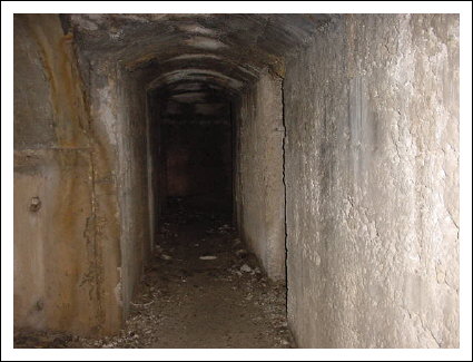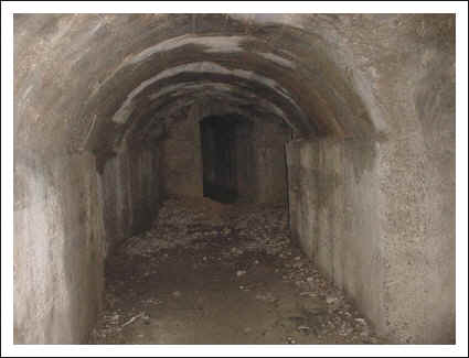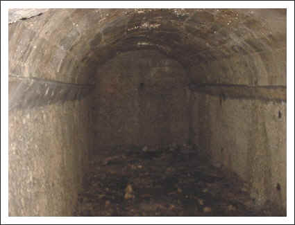 Die Kaverne von innen, links und rechts sind Wasserrinnen angebracht, die die eindringende Nässe ableiteten