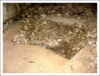 Betonsockel als Auflager der Kanone in einer der beiden großen Geschützkavernen, wie sie zum Beispiel die 8cm/M5 oder M8 Kanone benötigte.
