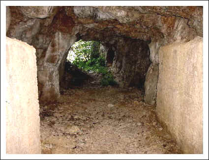 Die Eingangstür zu einer ausbetonierten Kaverne, auch hier massiver Beton, allerdings ohne Stahleinlage, so genannter Stampfbeton