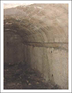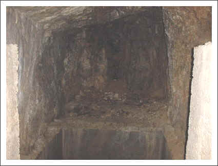 Übergang von dem breiten zum schmalen Teil der Hauptgalerie, hier wurden eingelassene Stahlträger herausgebrochen, wahrscheinlich war es eine Art kleiner Kran, der dort befestigt war