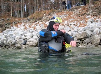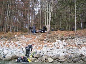 Tauchgang im Walchensee an der Pioniertafel