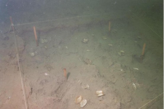 Unterwasserarchäologie Wenn, wie zu belegen ist, unsere Teich- und Malermuscheln auf ein Mindestmaß an verfügbaren Nährstoffen angewiesen sind, um dichte Populationen auszubilden, und wenn wir weiter davon auszugehen haben, dass Gewässer wie der Starnberger See oder der Tegernsee wieder (fast) so sauber sind wie vor hundert Jahren – müsste dann nicht zu dokumentieren sein, dass in diesen Seen um die Wende des vorvorigen Jahrhunderts gar keine ausgedehnten Großmuschelbestände vorhanden waren? Dass es in ihnen erst dann zur Massenentwicklung heimischer Großmuscheln kam, als im Zuge der Industrialisierung, der dichteren Besiedelung der Talräume, der Mechanisierung der Landwirtschaft und des zunehmenden Fremdenverkehrs reichlich Nährstoffe ins Gewässer geschwemmt wurden? Und dass diese Entwicklung dann, nach 1970, plötzlich wieder zu Ende war? Mit dankenswerter Unterstützung des Starnberger Instituts f. Fischerei haben wir uns im November 2005 dieser Frage ausführlicher widmen können. Wir suchten uns eine geeignete Stelle am Südwestufer des Tegernsees, zwischen Bad Wiessee und Kaltenbrunn, wo in 6 bis 10 m Tiefe Leerschalen von Teich- und Malermuscheln auf dem Grund aufliegend anzutreffen waren. Wir markierten dort eine Fläche von 4 m² und steckten in diese Fläche Lattenpegel ein: