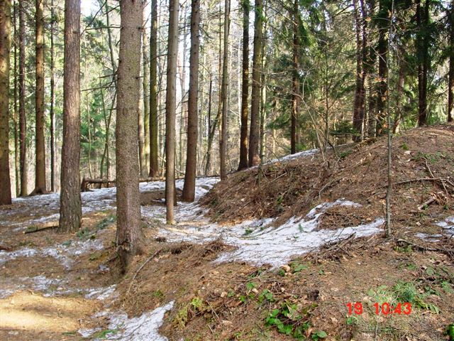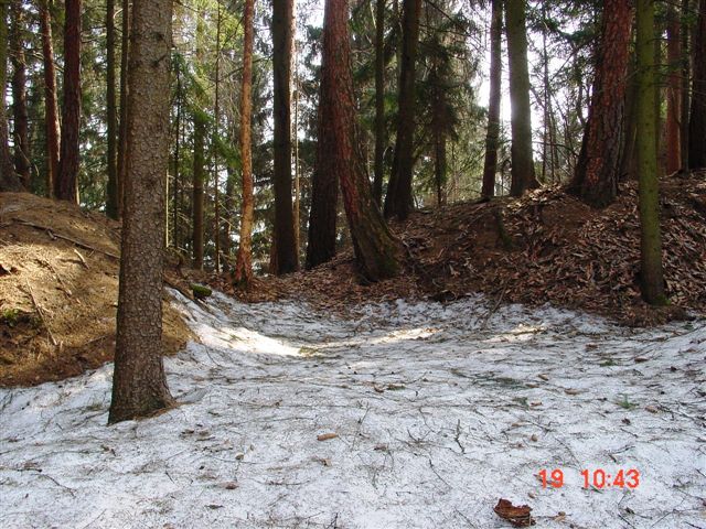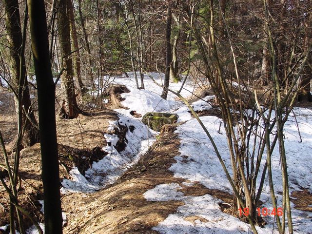 ca. 150m langen Erdwall mit 4 Stellungen für Geschütze. Hinter dem Wall