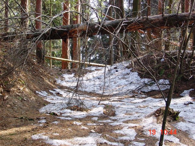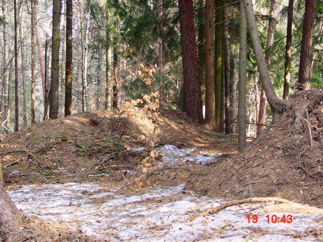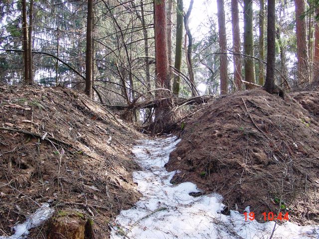 Schützengräben, die sich durch das Gelände schlängeln, finde ich einen