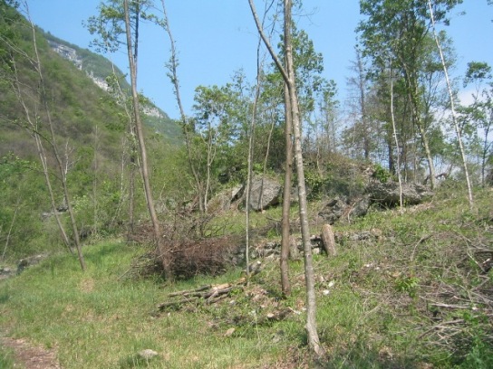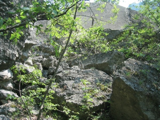 So sieht Trümmerfeld der Batterie aus, wenn man vom Zugangsweg darauf