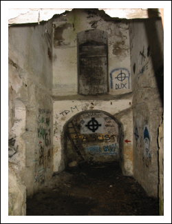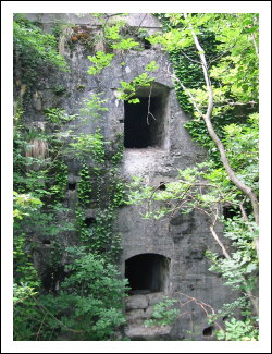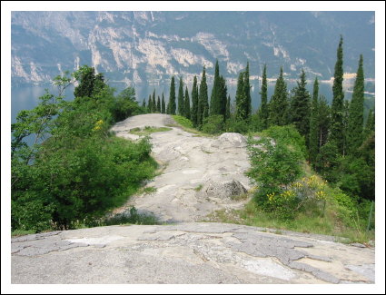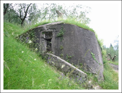 Das Werk Garda wurde auf dem südlichen Teil des Bergrückens vom Monte Brione gebaut. Die Haubitzenbatterie war noch nicht räumlich von den Kasematten getrennt. Das Werk wurde nach seiner Desarmierung mit Betonkuppeln und Scheingeschützen versehen. Auf den Betonkuppeln kann man heute noch das Dach begehen. Die Anlage ist stark verwachsen, eine Besichtigung ist anzuraten. Der Haupteingang ist vergittert und ein Eindringen durch die verbogenen Stäbe ist nicht ratsam. Leichter geht es links den Trampelpfad aufwärts, der Kehlseite entlang. Ein unvergittertes Fenster lädt zum eindringen ein. Ist der erste Sprung in den Kehlkoffer geschafft, Achtung auf das Dornengestrüpp, kann man locker in das Fenster einsteigen und sich im Werk bewegen. Vorsicht, in einigen Räumen fehlt der Boden, wir befinden uns im ersten Stock.! Eine Taschenlampe ist nicht unbedingt erforderlich. Das Auto kann man an der Straßengabelung nach dem Hotel Benacus am Rand parken. Der Weg geht nach Süden ca. 300m zum Werk. Die geteerte Straße führt zu den Werken Mittel- und Nordbatterie.