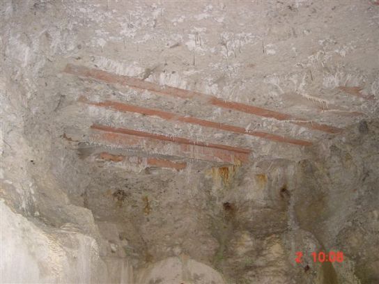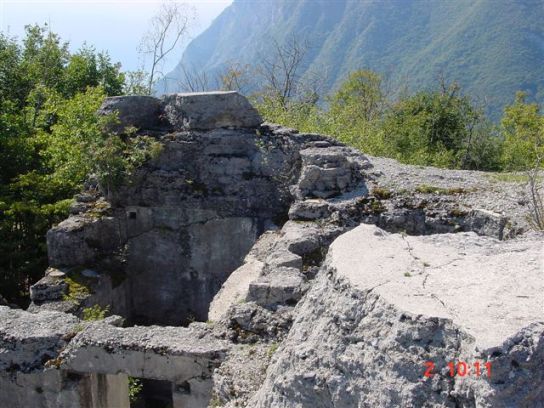 Die Aufnahmen betreffen den Block der PzH-Batterie mit 4 Brunnen für Panzerkuppeln 10cm/M05 und der B- Kuppel. Interessant ist die Bauweise des Blocks. Er wurde in Naturstein außen begonnen und noch während dieser Bauphase auf Beton umgestellt. Der Beton ist klassischer Stampfbeton mit Stahlträgerunterzügen..Im Gegensatz dazu wurde der linke Annex in Stahlbeton ausgeführt. Bei der Anwendung des armierten Betons war man allerdings in einem Experimentierstadium und hatte anscheinend die Statik und Technik der Armierung noch nicht begriffen. In den Mauern wurden horizontale Stahleinlagen übereinander geschichtet anstatt eine vertikal aufgehende Stahlarmierung (was richtig gewesen wäre). Die Armierung besteht nicht aus geflochtenen Stahlmatten , sondern aus Streckmetallmatten, die man auch als Zäune verwenden kann, wenn man die Matten auseinander zieht und somit das Rhombusmuster entsteht. Zurück zum Batterieblock: Dieser wurde von vorne nach hinten in Abschnitten gegossen. Hinter den Brunnen und im Bereich des Verbindungsganges, der die gesamte Batterie durchläuft ist einen durchgehende Betonfuge durch den ganzen Bau, der die 2 Betongiessabschnitte trennt. Diese Fuge ist sichtbar, da das Dach demoliert wurde. Nach der Fertigstellung des Blockes wurde das Dach gegossen. Tombio war ein kleines und sehr kompaktes Werk, man quetschte geradezu alles rein in den Beton an Räumlichkeiten, was noch ging, und trotzdem noch eine einigermaßen gute Beschussfestigkeit zu erhalten. Trotzdem hätte die schwere feindliche Belagerungsartillerie es in kurzer Zeit in Stücke zerschossen, es war hervorragend sichtbar, die Kuppeln waren dicht gedrängt beieinander, wenige Volltreffer auf dem Verdeck (auch ohne Durchschlag) hätten diese Batterie außer Gefecht gesetzt. Die Deckenarmierung war ca. 2m dick aus Stampfbeton mit Stahlträgerunterzügen (siehe Fotos), die nicht dicht an dicht lagen. Bei Volltreffern auf dem Verdeck, wäre dieses in kurzer Zeit zerstört wurden, der Stampfbeton wären geradezu aus den Lücken zwischen den Trägern nach innen in die Räume in großen Brocken hineingefallen, mal abgesehen von der großen Rissbildung. Tombio ist somit ein gutes und klassisches Beispiel der alten Betontechnologie, zwischen 1910 und 1912 errichtet. Die gleiche Decke in gleicher Stärke mit guter Rundstahlarmierung und enger Maschenweite von 10x10cm , mehrlagig in der unteren Zugzone oder einlagig mit dickem Rundstahl von 30mm Stärke hätten jedem Feindbeschuss locker getrotzt! Dazu waren die Spannweiten der Decken über den Kasematten viel zu klein (siehe Fotos). Aber dazu kam es ja erst in der FS Trient im Jahre 1915 und sonst wo auch später... Gruß VJ |