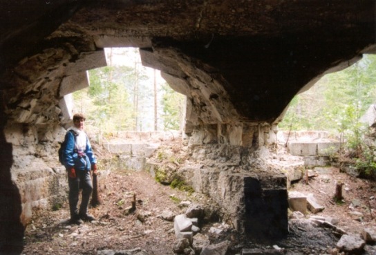 Fort Landro 008 zeigt die Beobachterkuppelüberreste auf dem Dach der Kanonenbatterie mit Blick auf der Helltal anlagen gegenüber im Höhlensteintal. Man bemerke die Überreste des original Blechdaches am Dachrand. Blickrichtung Westen Vielen Dank an Alvin und nach Kanada für diese Fotos