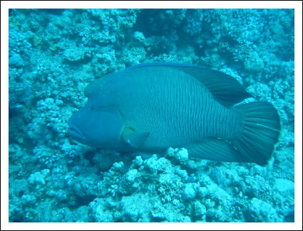 Bei der großen Salatkoralle tummelt sich ein sehr großer Napoleon, der