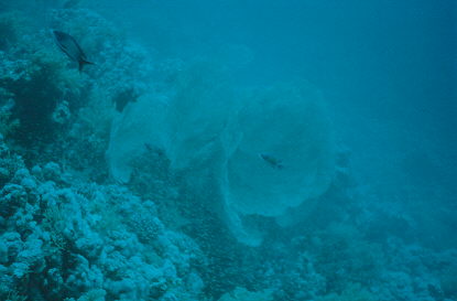 Große Gorgonien liegen auf dem Weg zwischen Canyon und Wrack.