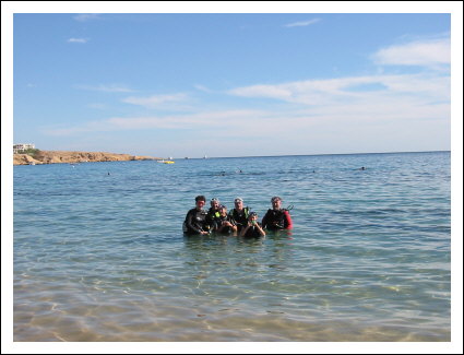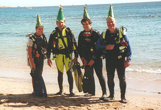 01.01.02, nachdem wir ausgeschlafen hatten, trafen wir uns am Hiltonstrand gegen 13 Uhr zum Neujahrstauchgang.