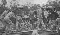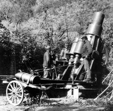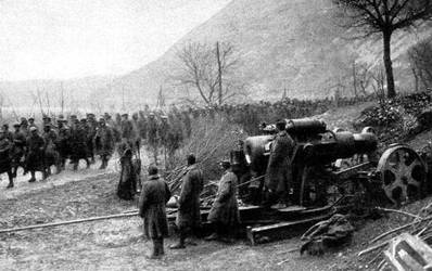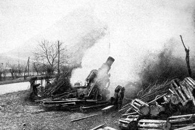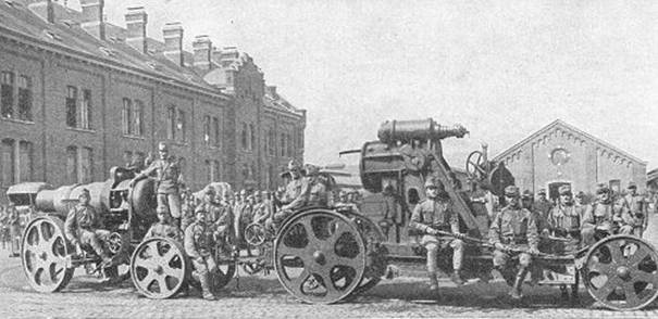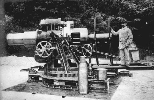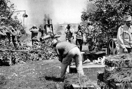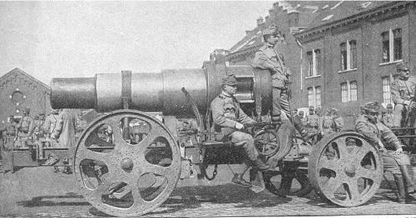 with heavy German artillery (Krupp 38 cm howitzers) they were used to