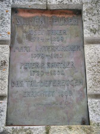 Jahren 1809-1909 an die Helden von Tirol. Standort: Zotten Defereggental direkt an der Hauptstrasse.